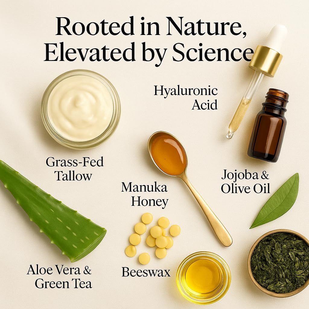 Grass-Fed Tallow — Mimics your skin’s natural oils for optimal absorption and deep nourishment.